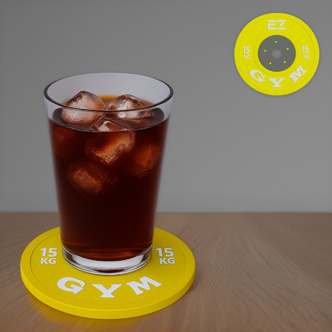 Design Funcional e Estiloso: Moldado com a forma de uma disco de ginásio, esta base para copos não só oferece proteção, mas também adiciona um toque de estilo e personalidade ao teu ambiente.